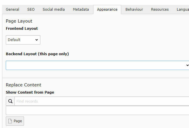 - Default: Ist das voreingestellte Template für neu angelegte Seiten